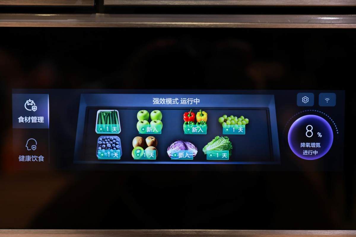 通过精准调控储藏室内氮氧比例,卡萨帝冰箱可有效抑制细胞呼吸作用,让食材7天新鲜如初,更让VC、叶酸、花青素等营养留存率超过99%,实现行业唯一细胞级养鲜。以此为基础,卡萨帝冰箱更迭代出AI氮氧智控保鲜科技,利用“AI之眼”让冰箱自动识别食材种类并调整储存环境,并为用户定制健康食谱,将“被动保鲜”升级为“主动营养管理”。