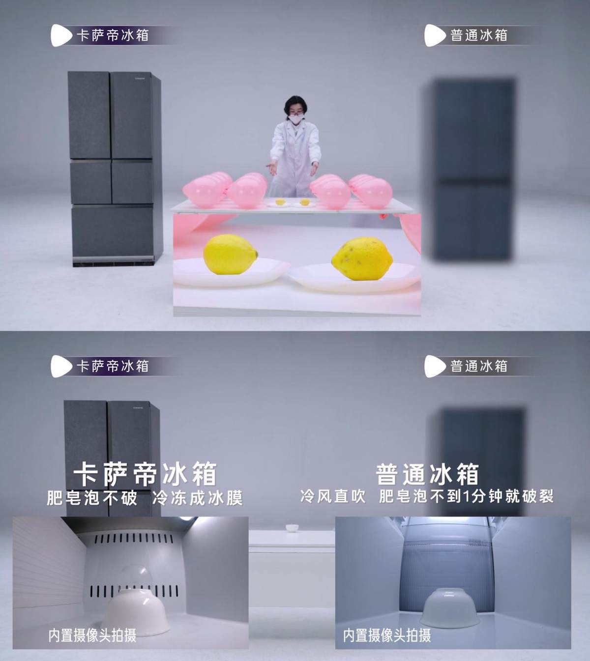 从柠檬汁喷爆气球到肥皂泡冷冻立住,实验背后的硬核科技,都是针对用户保鲜难题的精准解决方案。也正因长期深耕,卡萨帝才有信心把实验变成大众一眼能懂的生活画面。