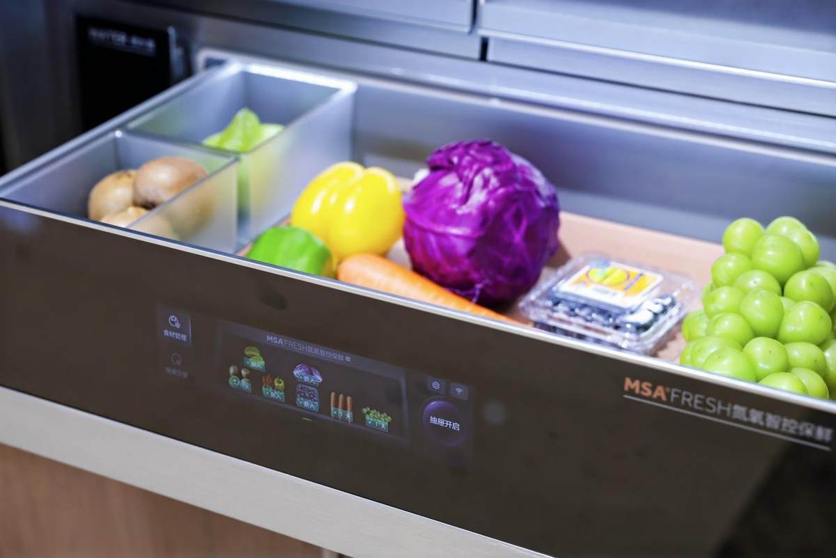 为了让用户吃得更新鲜营养,卡萨帝冰箱原创MSA控氧保鲜科技,在传统控温、控湿技术之外,开创了控氧这个新维度,如今升级的MSA®氮氧智控保鲜科技能让果蔬冷藏7天后维生素等营养留存率超99%。另外,她还创新底置循环风幕科技,让冷冻食材60天还能保持原汁原味。