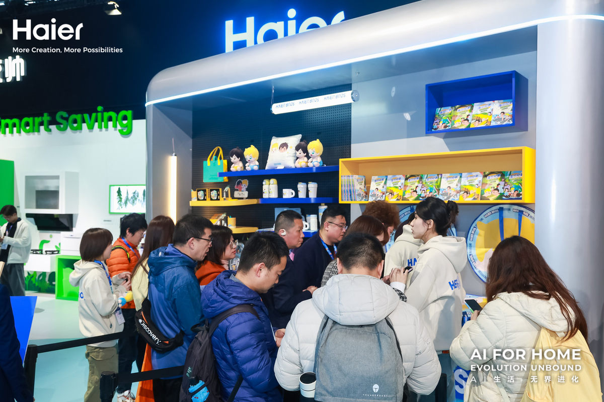 走进海尔兄弟展区,经典IP与前沿AI科技碰撞交融,全系列智趣新品覆盖陪伴、亲子、养宠、文创等多元场景,让跨越代际的陪伴与关怀触手可及。