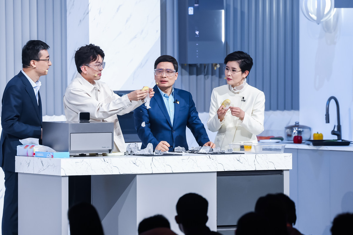 直播间里,周云杰与海尔集团副总裁、冰箱产业总经理吴勇,携手“生活质检员”毕导,共同挑战了一个看似不可能的“解冻任务”:5分钟内,解冻一块冻成冰坨的榴莲。